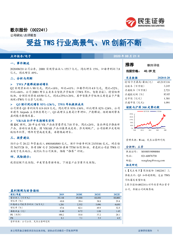 民生证券:歌尔股份(002241)-受益TWS行业高景气、VR创新不断.pdf