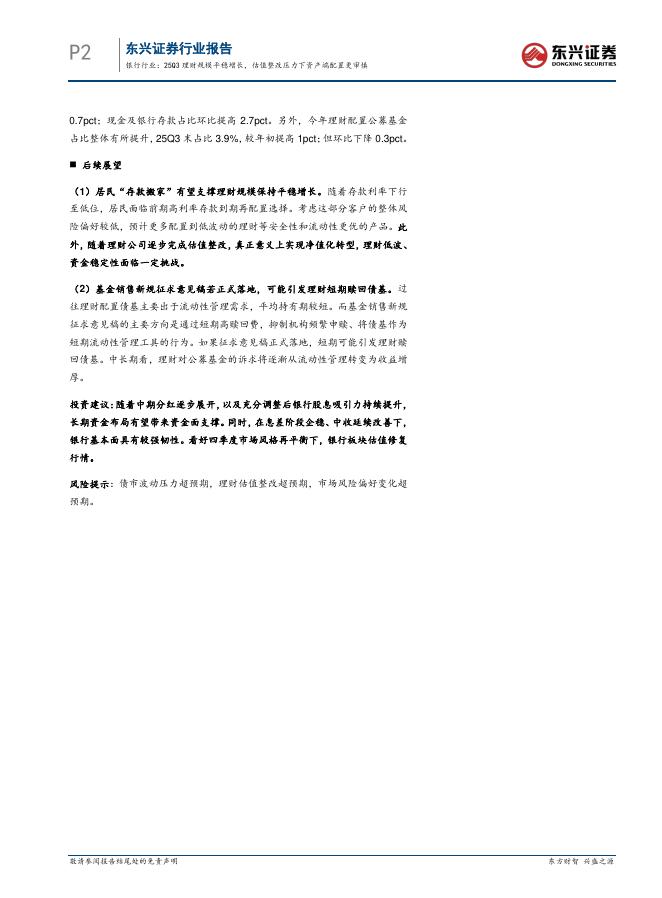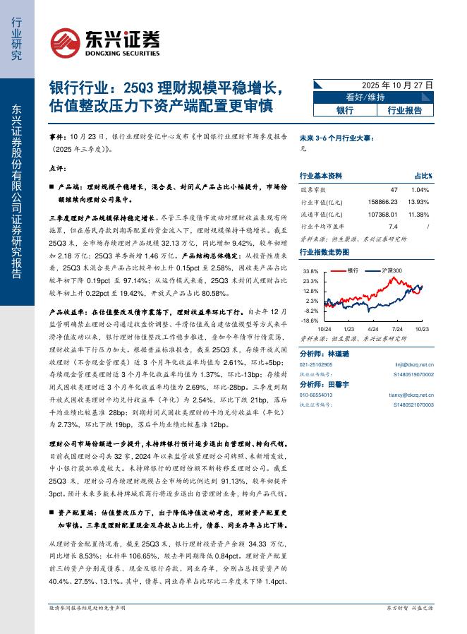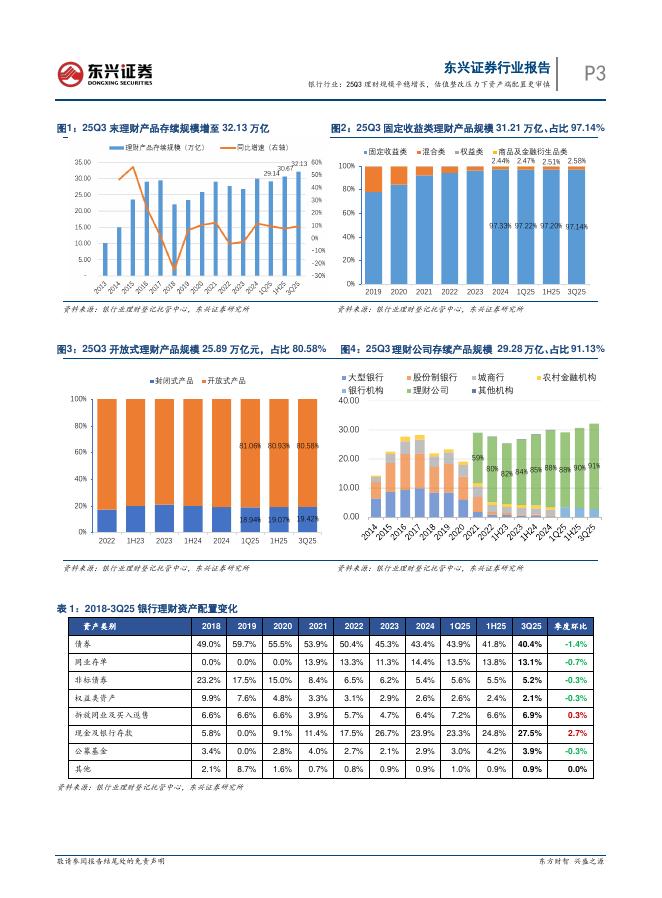 东兴证券:银行行业:25Q3理财规模平稳增长,估值整改压力下资产端配置更审慎.pdf