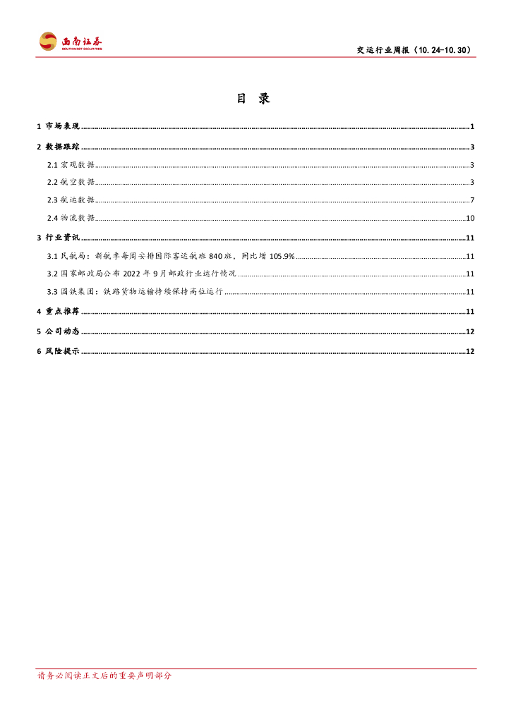 西南证券:交运行业周报:国际航班数量大增,邮政运输平稳运行.pdf