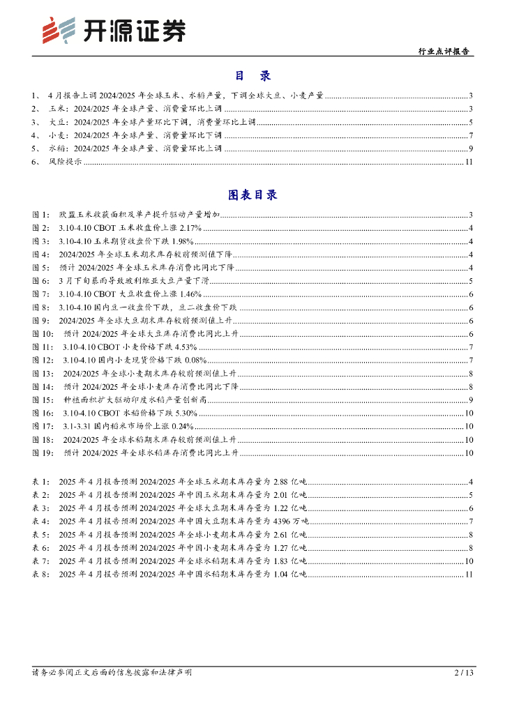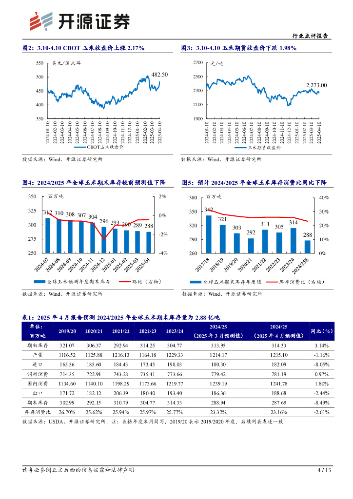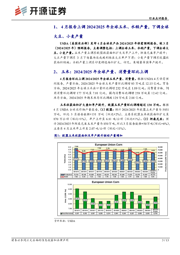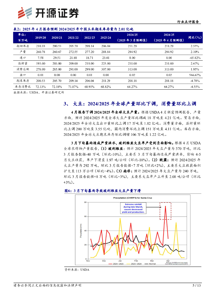 开源证券:农林牧渔行业点评报告:4月USDA农产品报告上调全球玉米、水稻产量,下调全球大豆、小麦产量.pdf