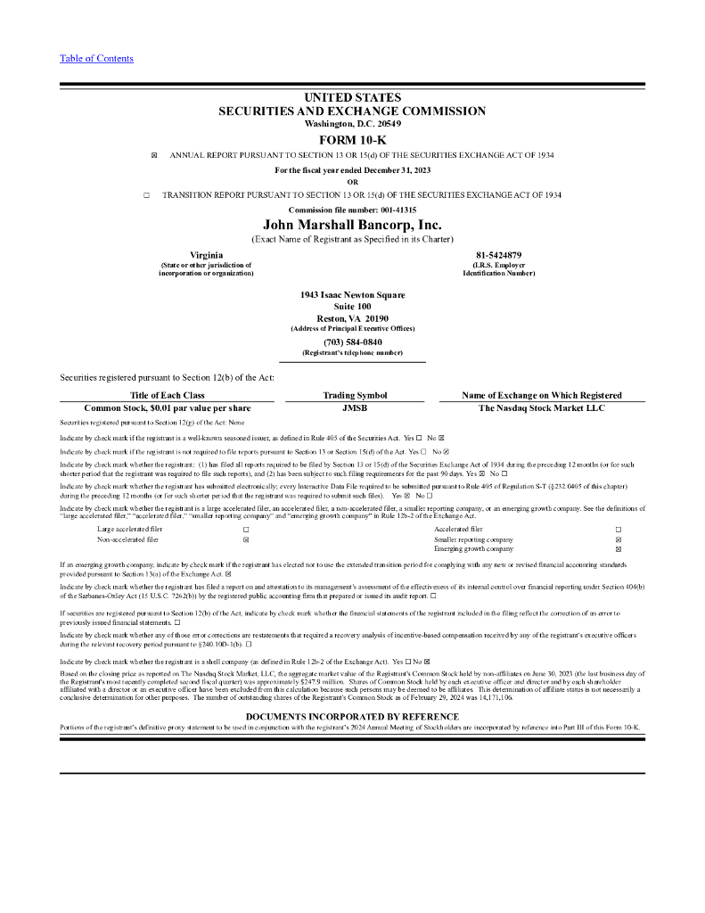 John Marshall Bancorp, Inc.(JMSB)2023财年年度报告(英文版).pdf