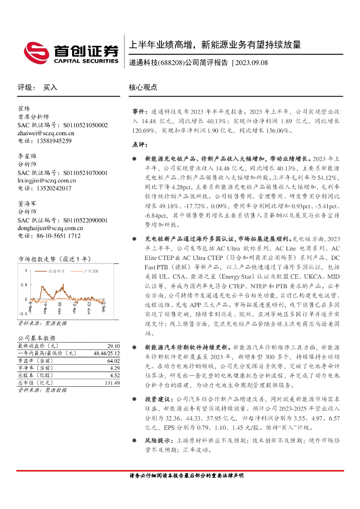 首创证券:道通科技(688208)-公司简评报告:上半年业绩高增,新能源业务有望持续放量.pdf