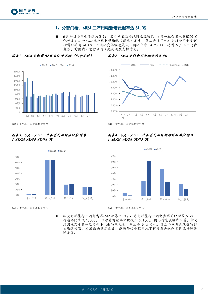 国金证券:公用事业及环保产业行业研究:6月用电:二产用电增量贡献率达61.0%.pdf