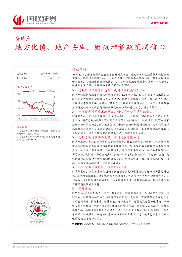 国联证券:房地产行业点评研究:地方化债、地产去库,财政增量政策提信心.pdf