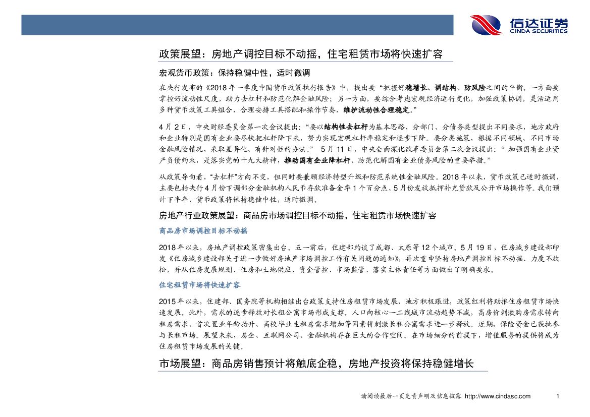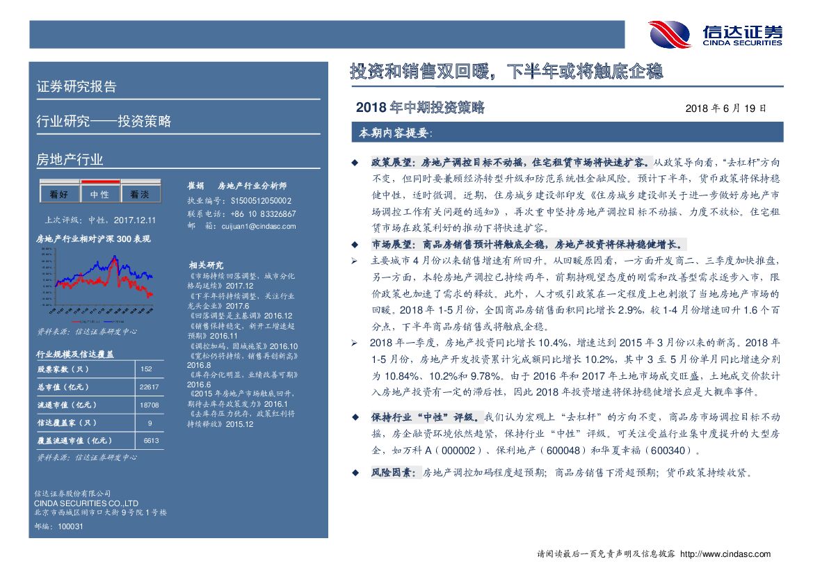 信达证券:房地产行业2018年中期投资策略:投资和销售双回暖,下半年或将触底企稳.pdf