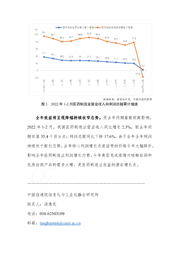 中国信通院:2022年1-2月医药行业运行监测报告:我国医药制造业增加值继续保持两位数增长.pdf