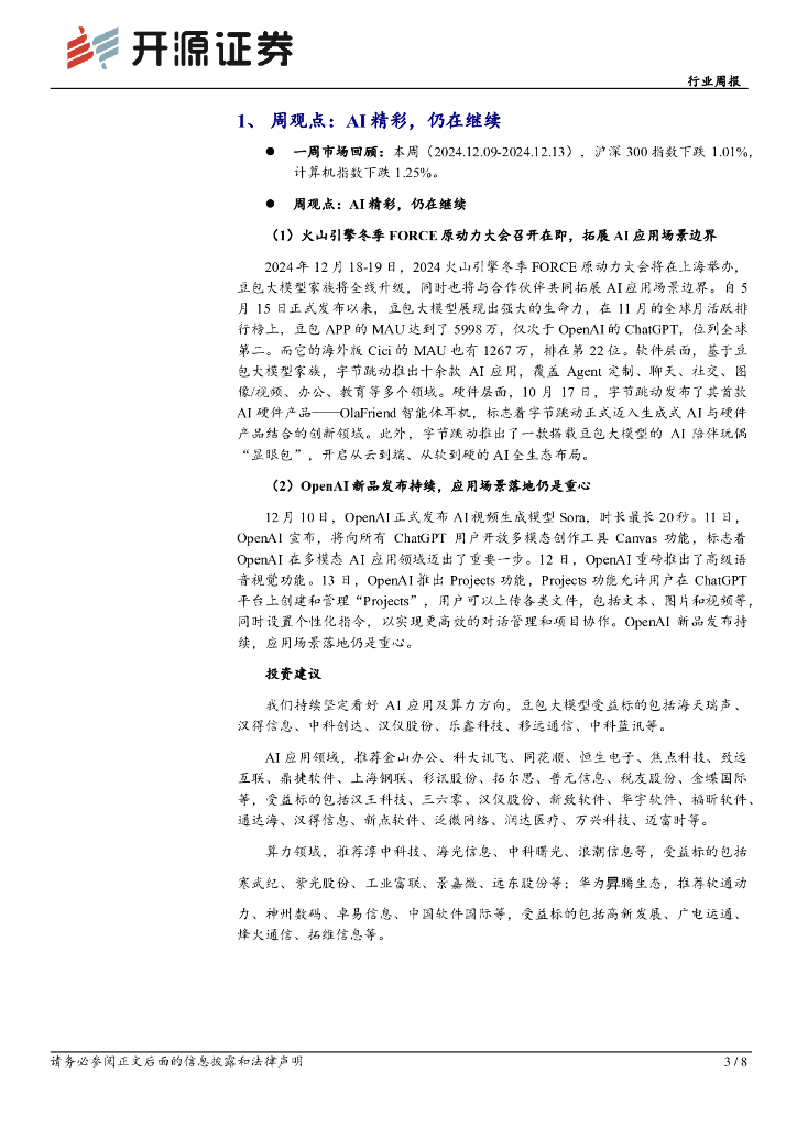 开源证券:计算机行业周报:周观点:AI精彩,仍在继续.pdf
