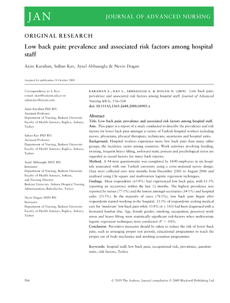 《护理学基础》Low back pain prevalence and associated risk factors among hospital staff..pdf