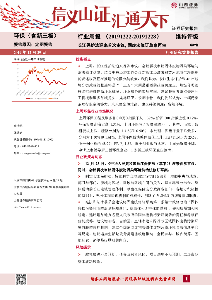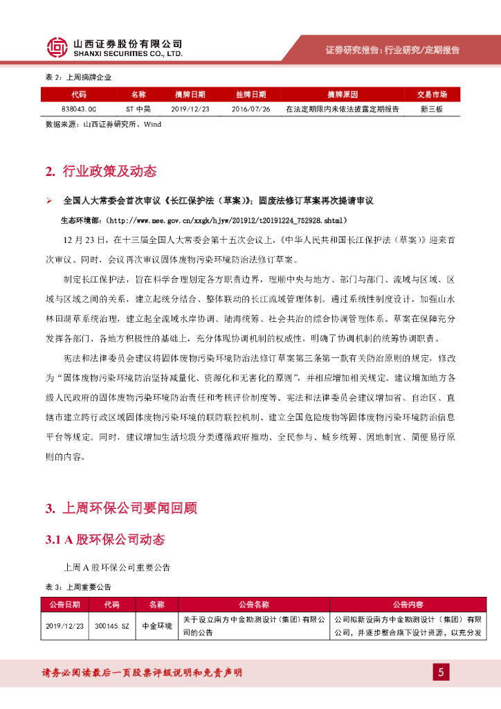 山西证券:环保行业(含新三板)行业周报:长江保护法迎来首次审议,固废法修订草案再审.pdf