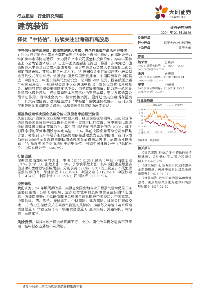 天风证券:建筑装饰行业报告:择优“中特估”,持续关注出海链和高股息.pdf
