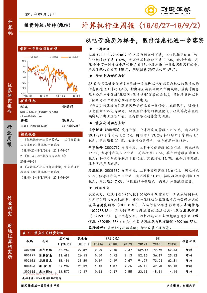财通证券:计算机行业周报:以电子病历为抓手,医疗信息化进一步落实.pdf