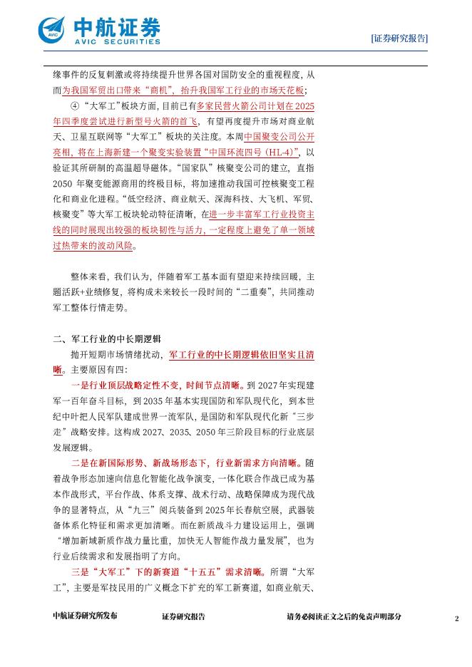 中航证券:军工行业周报:舰载机首次电磁弹射起飞展示,核聚变“国家队”首次公开亮相.pdf