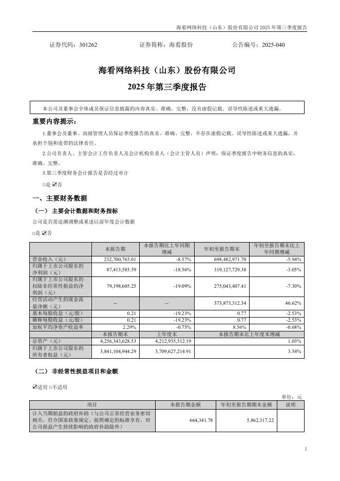 301262-海看股份:2025年三季度报告.pdf