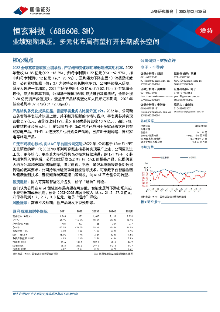 国信证券:恒玄科技(688608)-业绩短期承压, 多元化布局有望打开长期成长空间.pdf