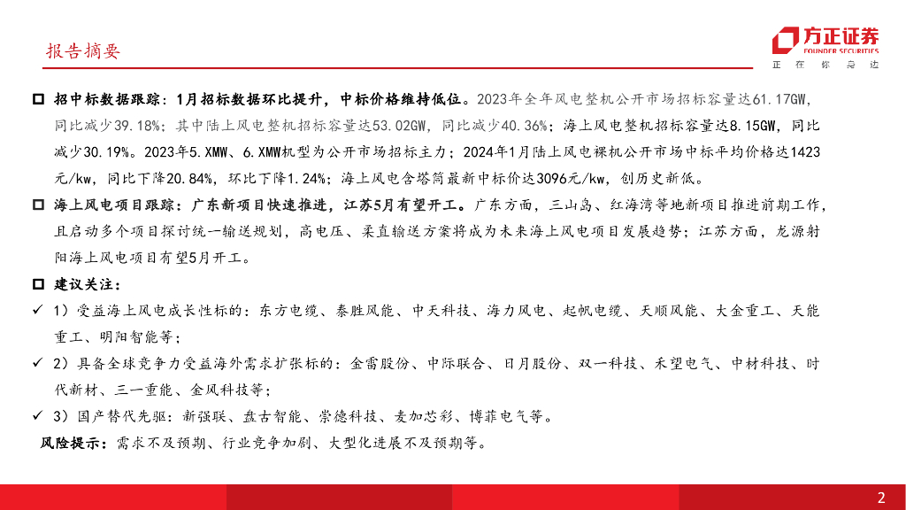 方正证券:电力设备与新能源行业风电月刊·长风起系列一:风机招标维持稳定,海风新项目建设快速推进.pdf