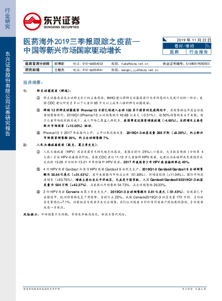 东兴证券:医药海外2019三季报跟踪之疫苗--中国等新兴市场国家驱动增长.pdf
