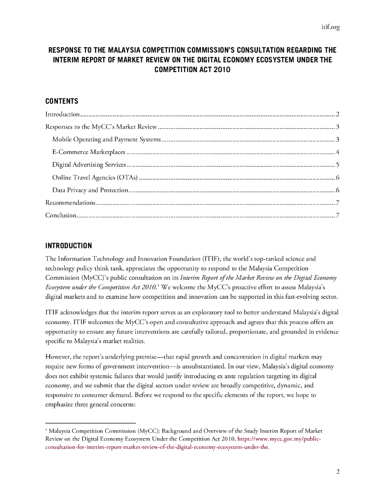 ITIF:2025年马来西亚竞争委员会关于马来西亚数字市场评估的评论报告(英文版).pdf