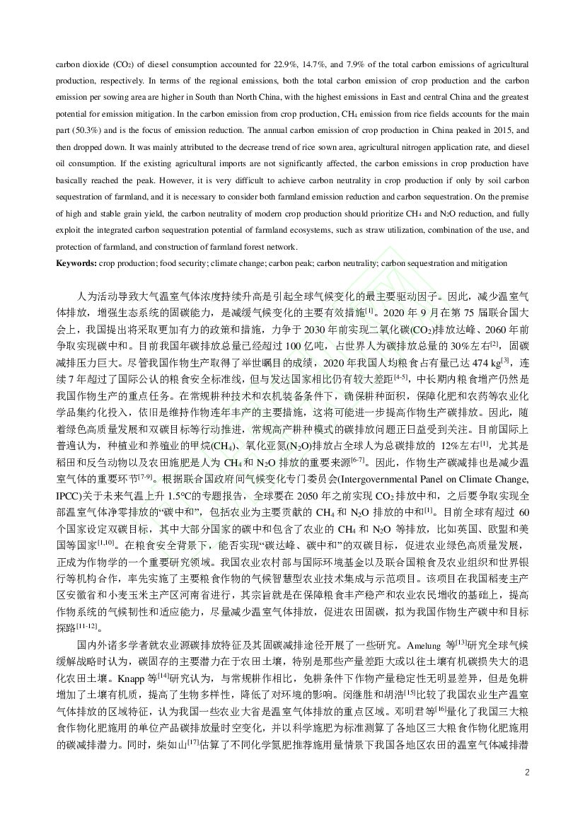 中国农业科学院:我国作物生产碳排放特征及助力碳中和的减排固碳途径.pdf
