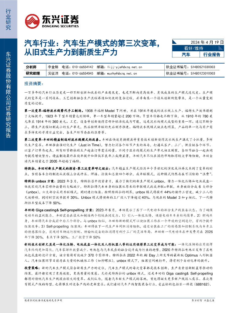 东兴证券:汽车行业:汽车生产模式的第三次变革,从旧式生产力到新质生产力.pdf