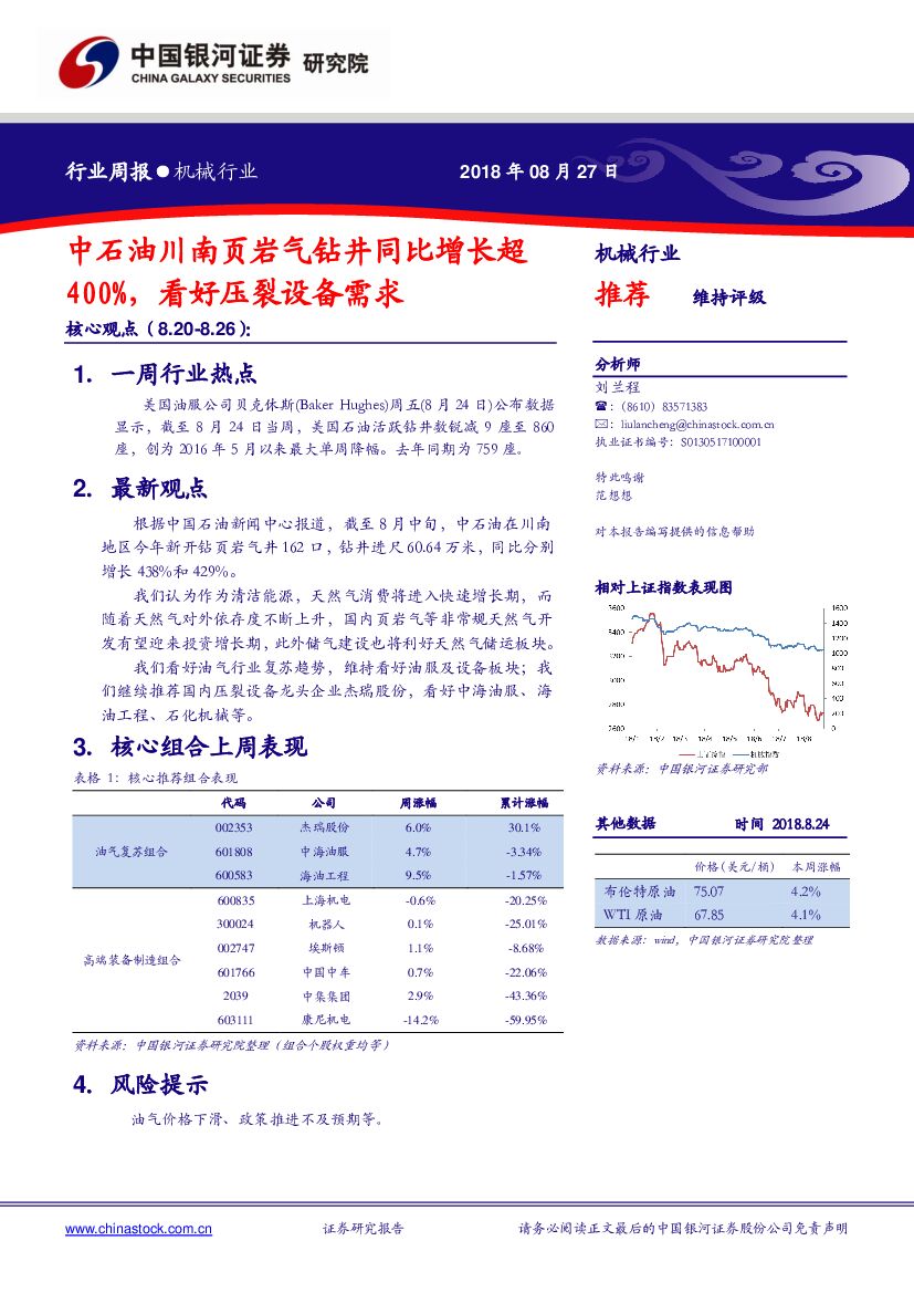 中国银河:机械行业周报:中石油川南页岩气钻井同比增长超400%,看好压裂设备需求.pdf
