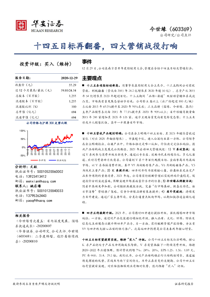 华安证券:今世缘(603369)-十四五目标再翻番,四大营销战役打响.pdf