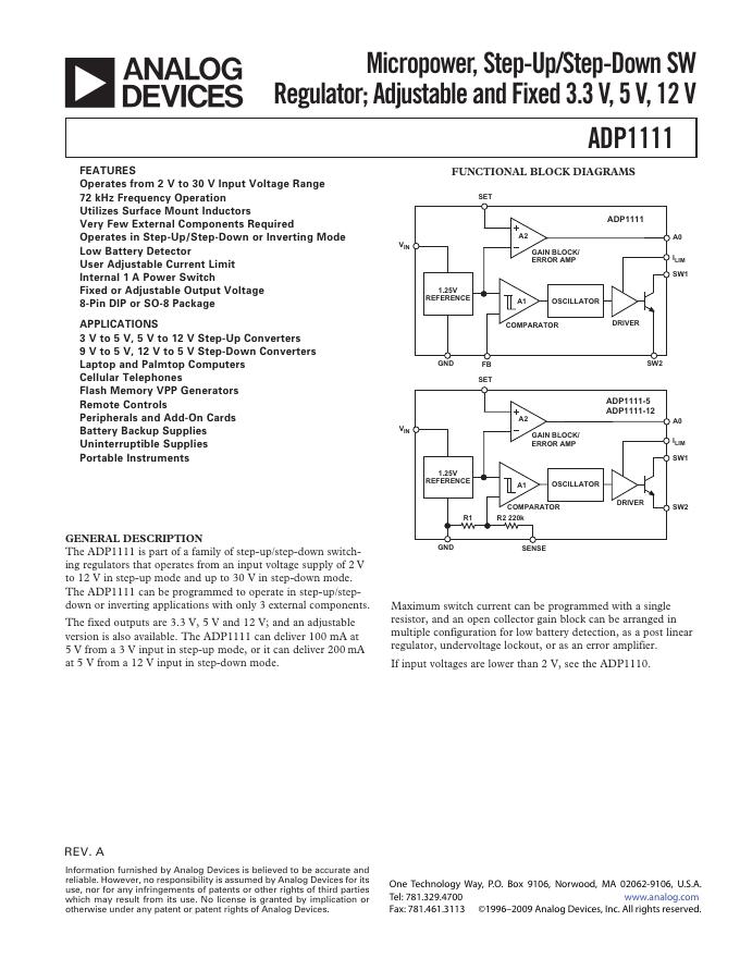 ANALOG DEVICES ADP1111 数据手册 (1).pdf