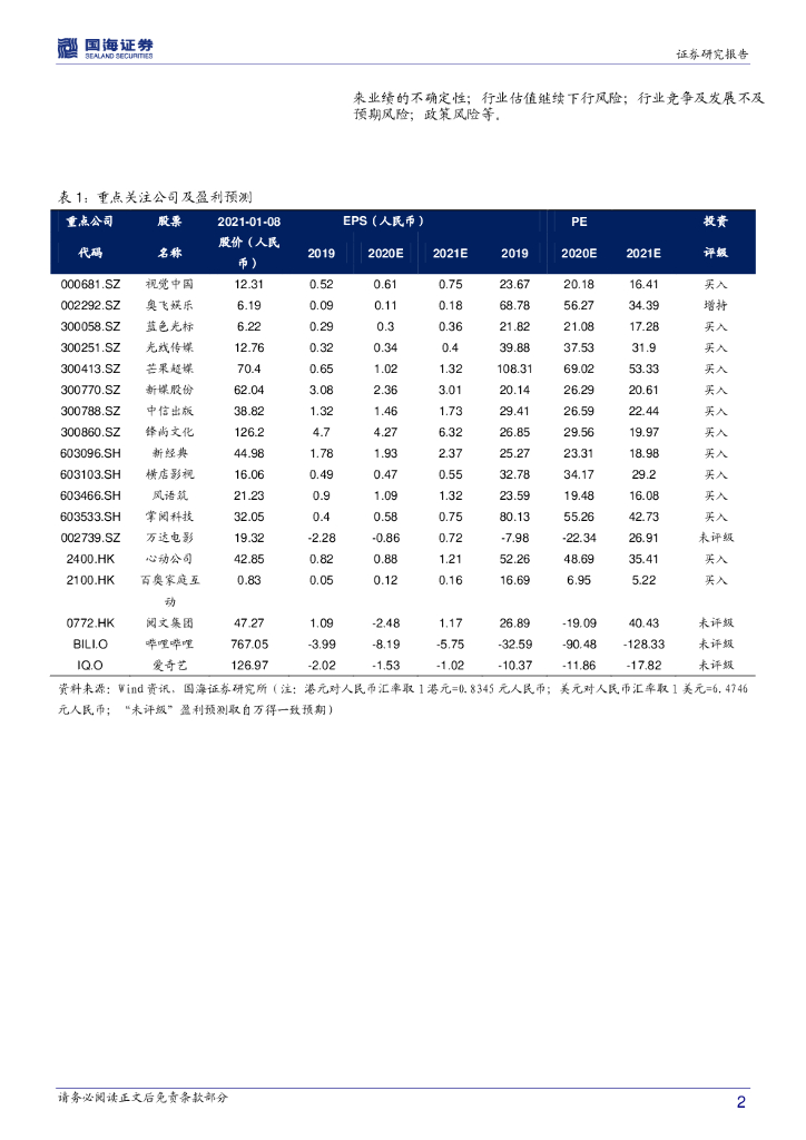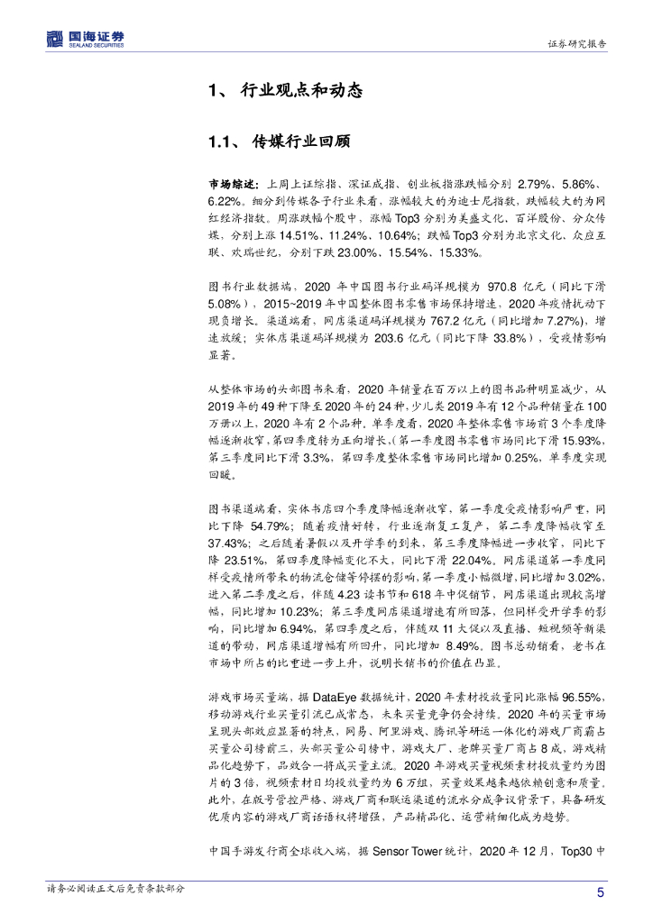 国海证券:传媒行业周报:2020年受疫情影响板块业绩预期渐落地 关注2021年快手科技等新经济红利.pdf
