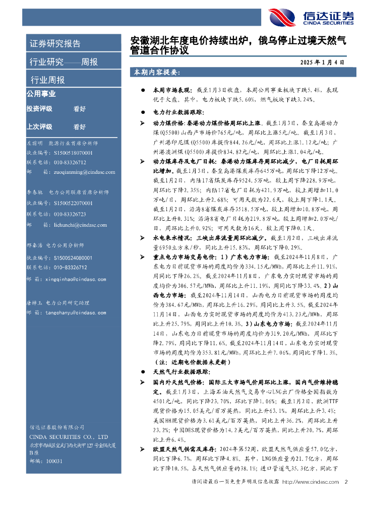信达证券:公用事业—电力天然气周报:安徽湖北年度电价持续出炉,俄乌停止过境天然气管道合作协议.pdf