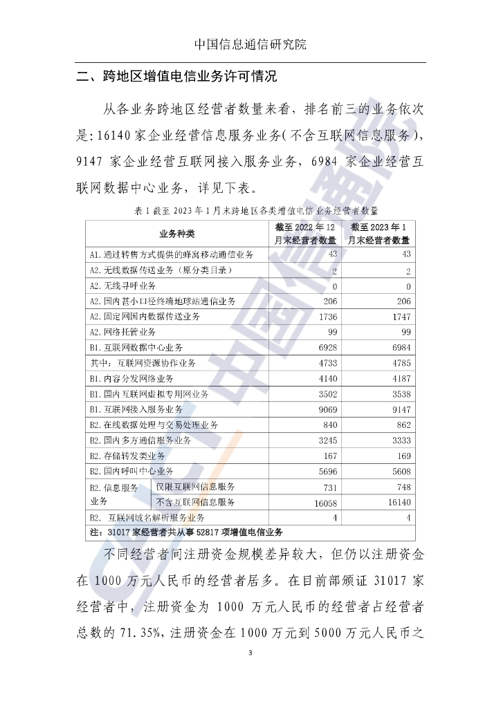中国信通院:国内增值电信业务许可情况报告(2023.1).pdf