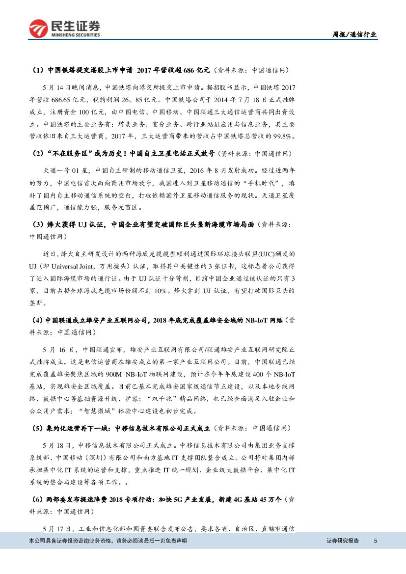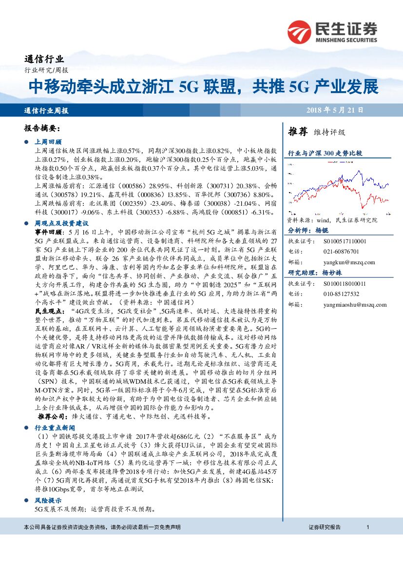 民生证券:通信行业行业研究周报:中移动牵头成立浙江5G联盟,共推5G产业发展.pdf