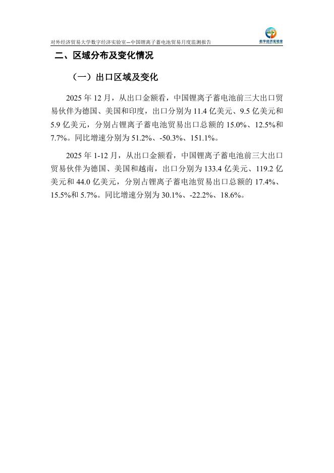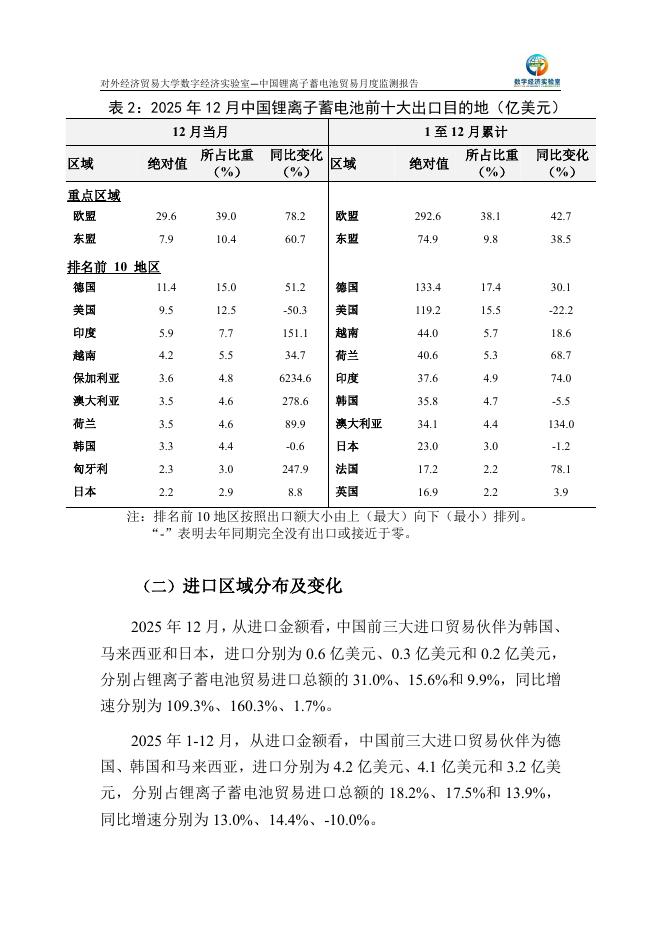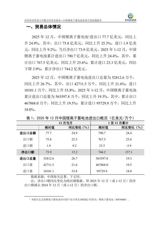 对外经济贸易大学:中国锂离子蓄电池贸易月度监测报告(2025年1-12月).pdf