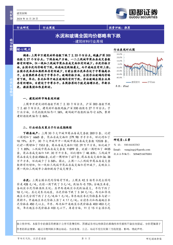 国都证券:建筑材料行业周报:水泥和玻璃全国均价都略有下跌.pdf
