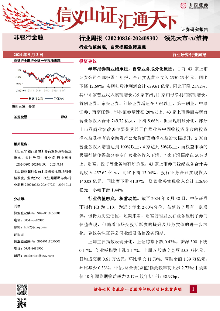 山西证券:行业估值触底,自营提振业绩表现.pdf