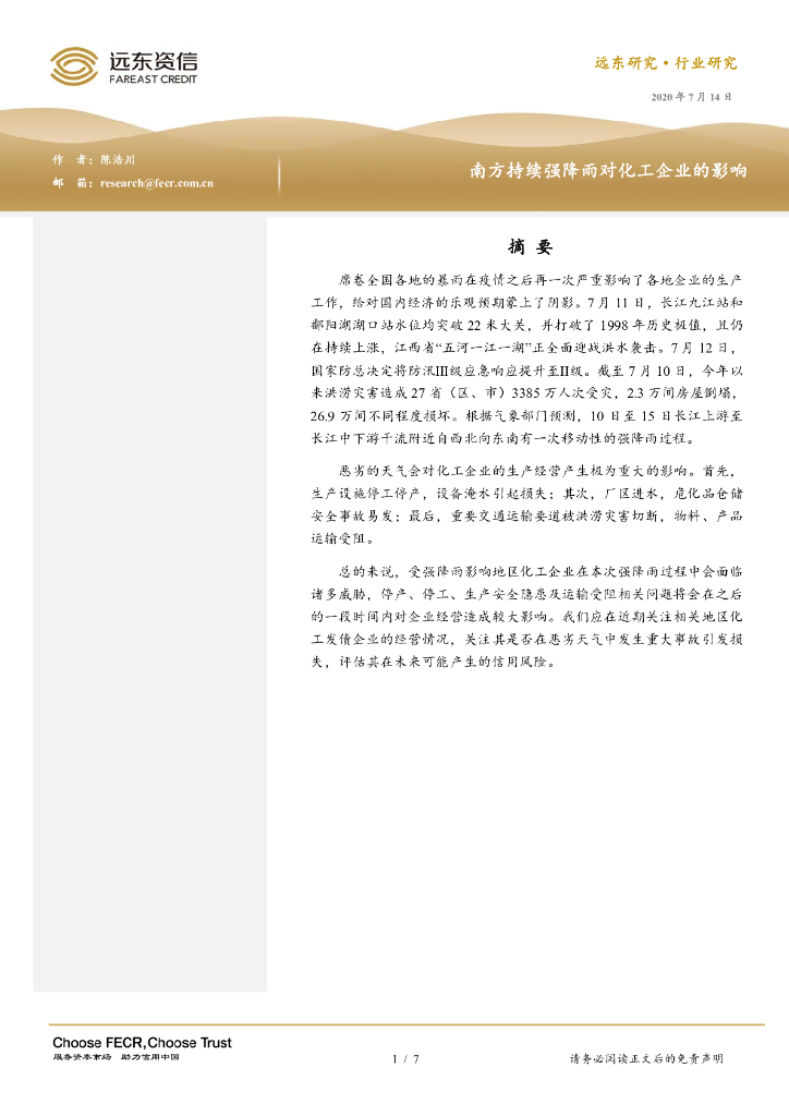 远东资信:南方持续强降雨对化工企业的影响.pdf