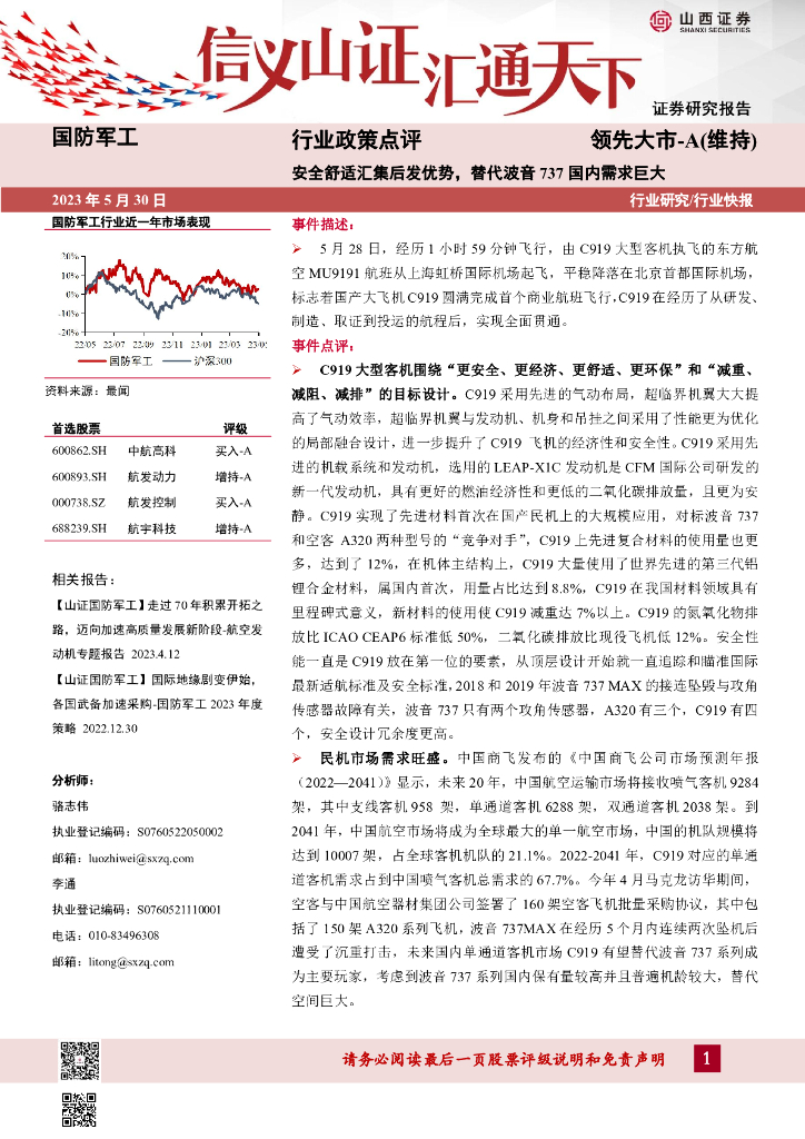 山西证券:国防军工行业政策点评:安全舒适汇集后发优势,替代波音737国内需求巨大.pdf