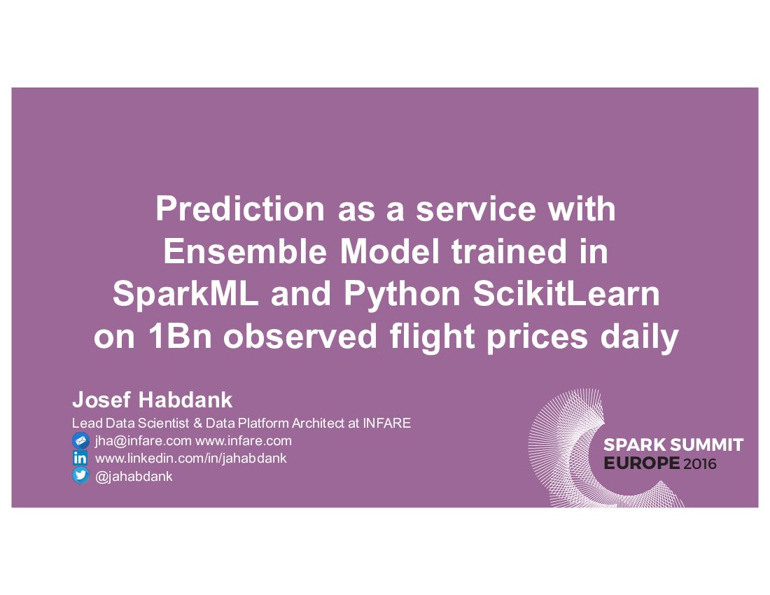 Prediction as a service with Ensemble Model trained in SparkML and Python ScikitLearn on 1Bn observed flight prices daily.pdf