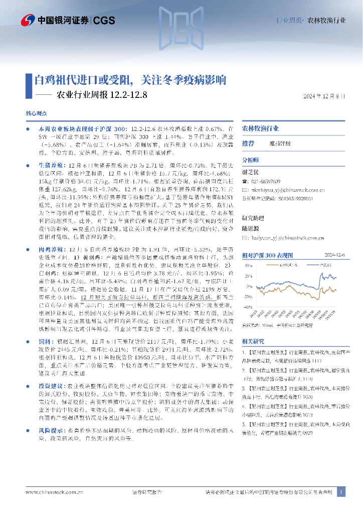 中国银河:农业行业周报:白鸡祖代进口或受阻,关注冬季疫病影响.pdf