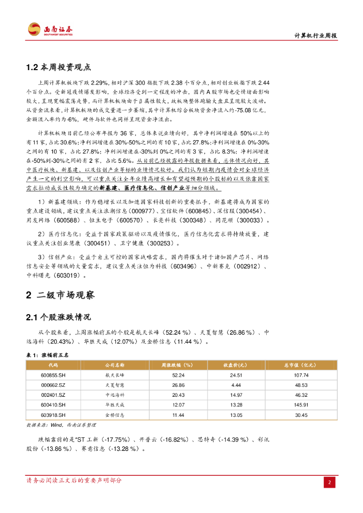 西南证券:计算机行业周报:新基建、医卫及信创为计算机重点配置方向.pdf