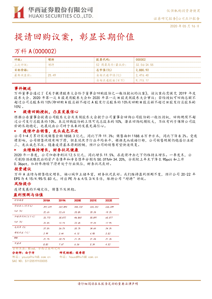 华西证券:万科A(000002)-提请回购议案,彰显长期价值.pdf