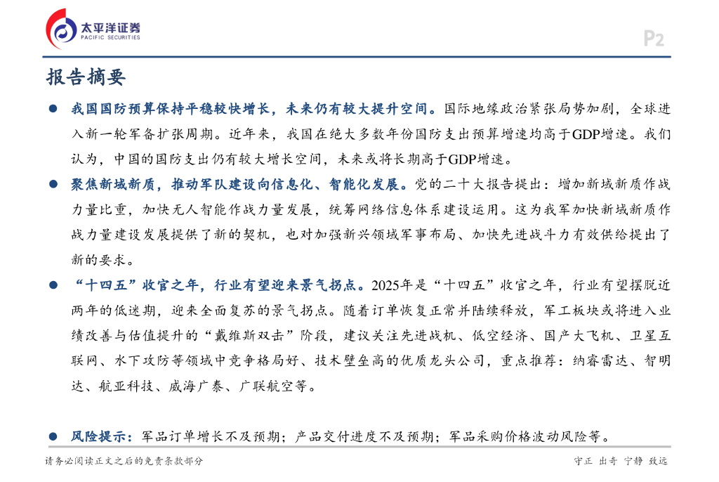 太平洋证券:国防军工2025年度策略报告:聚焦新域新质,迎接景气拐点.pdf