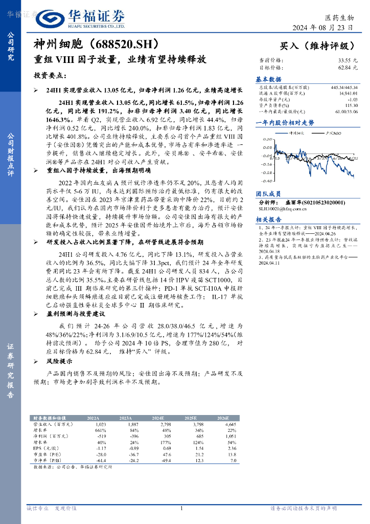 华福证券:神州细胞(688520)-重组VIII因子放量,业绩有望持续释放.pdf