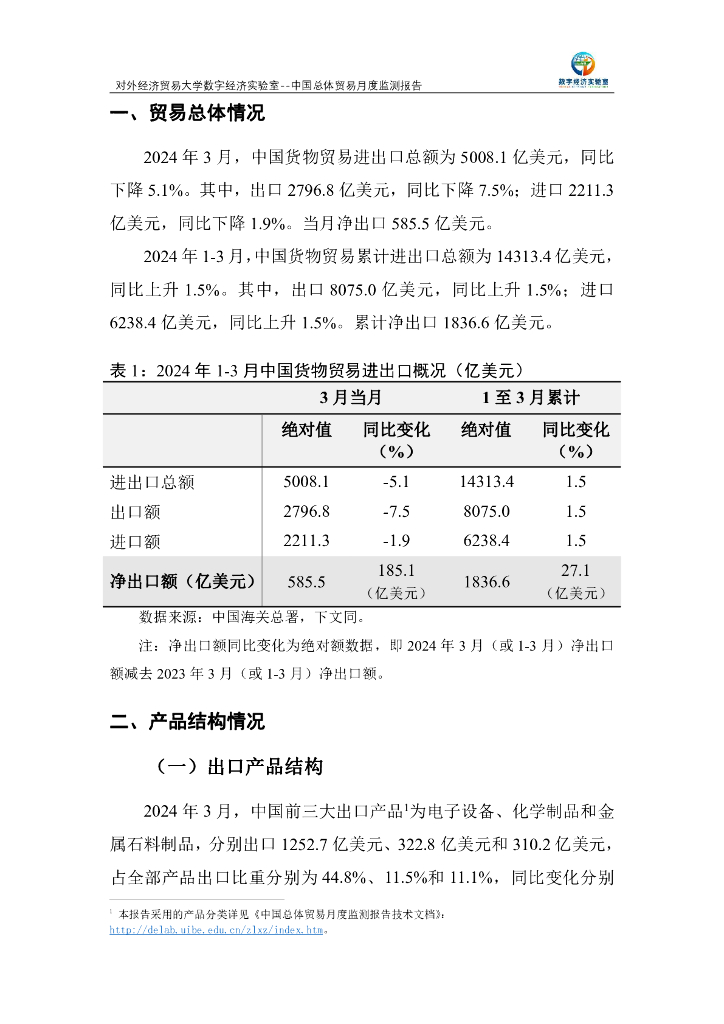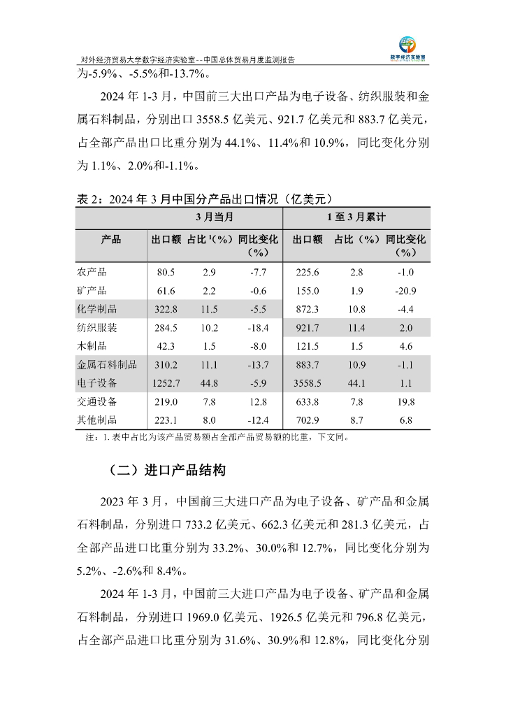 对外经济贸易大学:中国总体贸易月度(2024年1-3月)监测报告.pdf