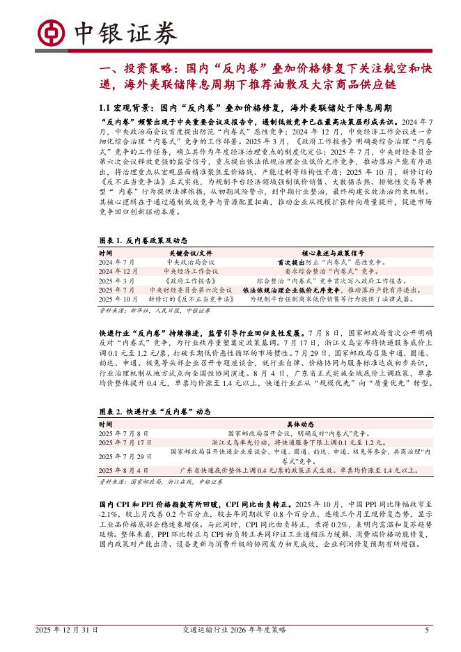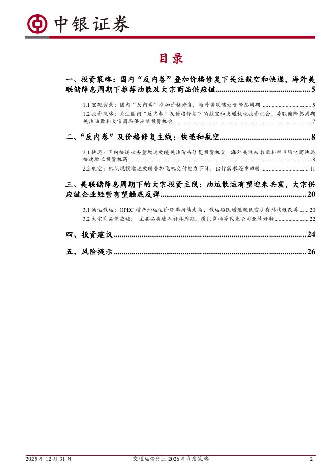 中银证券:交通运输行业2026年年度策略:国内“反内卷”叠加价格修复下关注航空和快递,海外美联储降息周期下推荐油散及大宗商品供应链.pdf