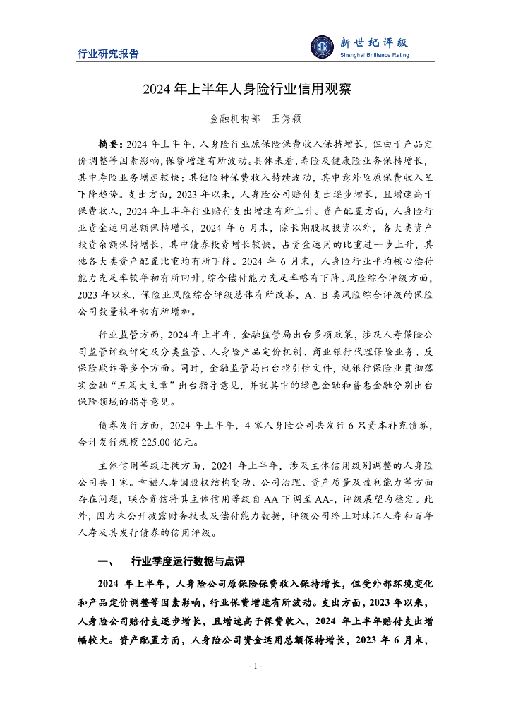 新世纪评级:2024年上半年人身险行业信用观察报告.pdf