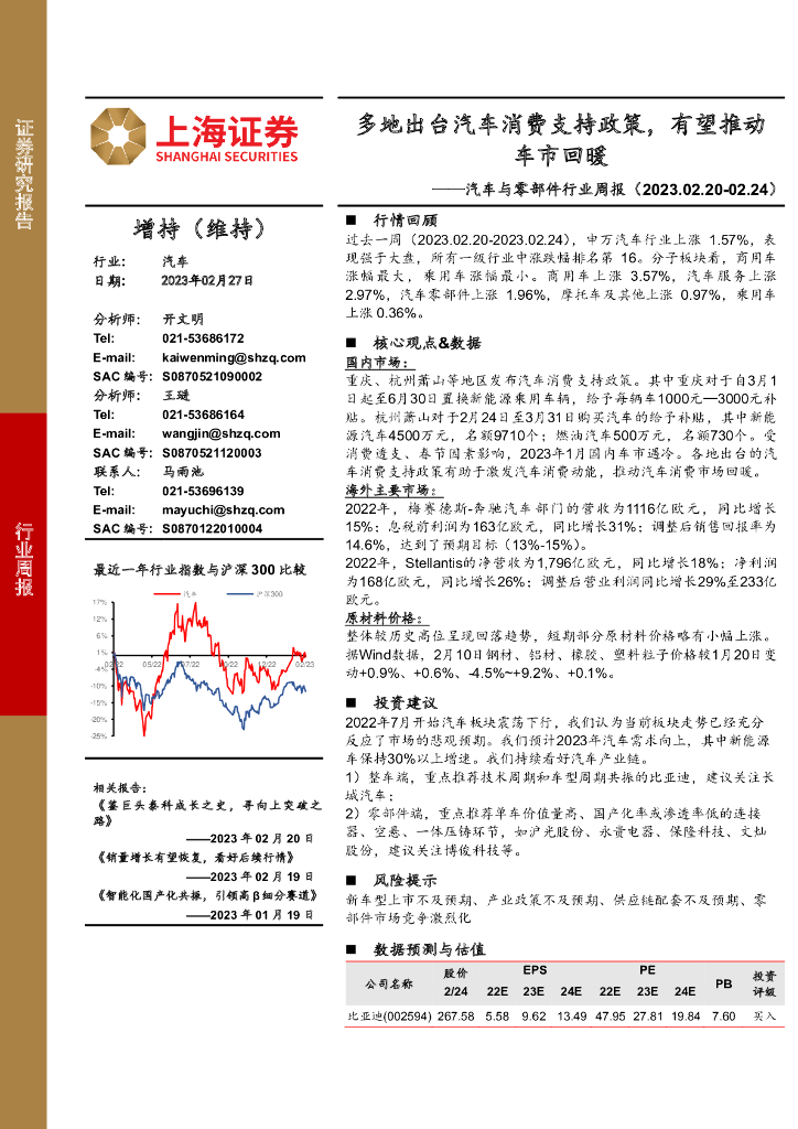 上海证券:汽车与零部件行业周报:多地出台汽车消费支持政策,有望推动车市回暖.pdf
