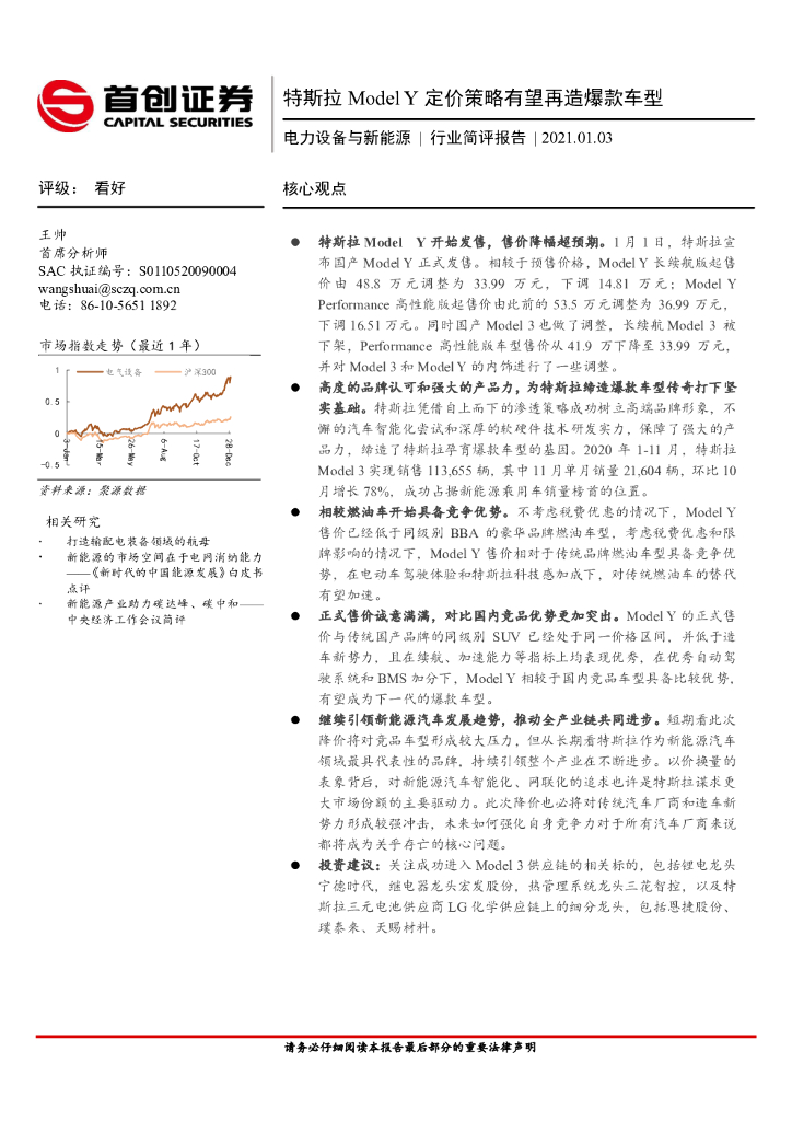 首创证券:电力设备与新能源行业简评报告:特斯拉Model Y定价策略有望再造爆款车型.pdf