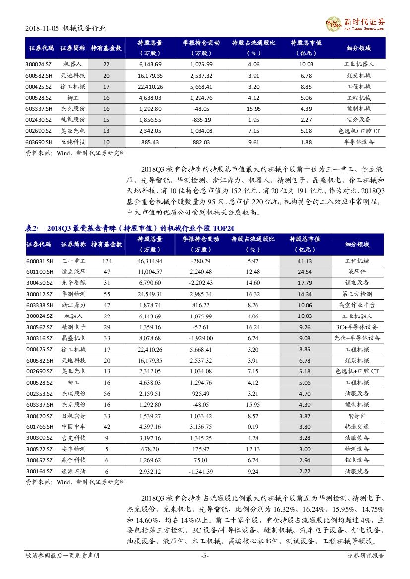新时代证券:2018Q3机械行业基金重仓持股分析报告:基金配置机械比例略有提升,高景气行业龙头受机构亲睐.pdf
