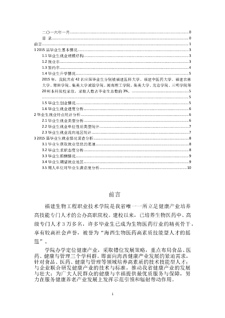 福建生物工程职业技术学院2015年毕业生就业质量报告.doc