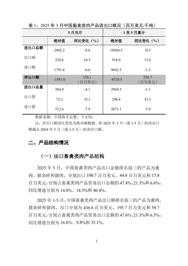 对外经济贸易大学:中国畜禽类肉产品贸易月度监测报告(2025年1-5月).pdf