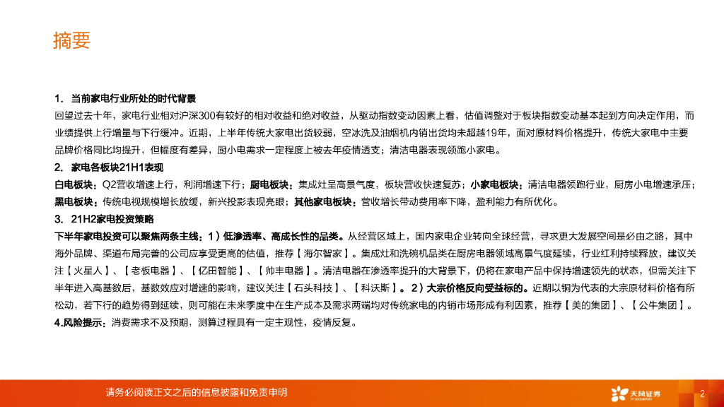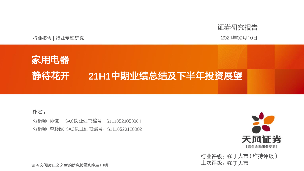 天风证券:家用电器21H1中期业绩总结及下半年投资展望:静待花开.pdf